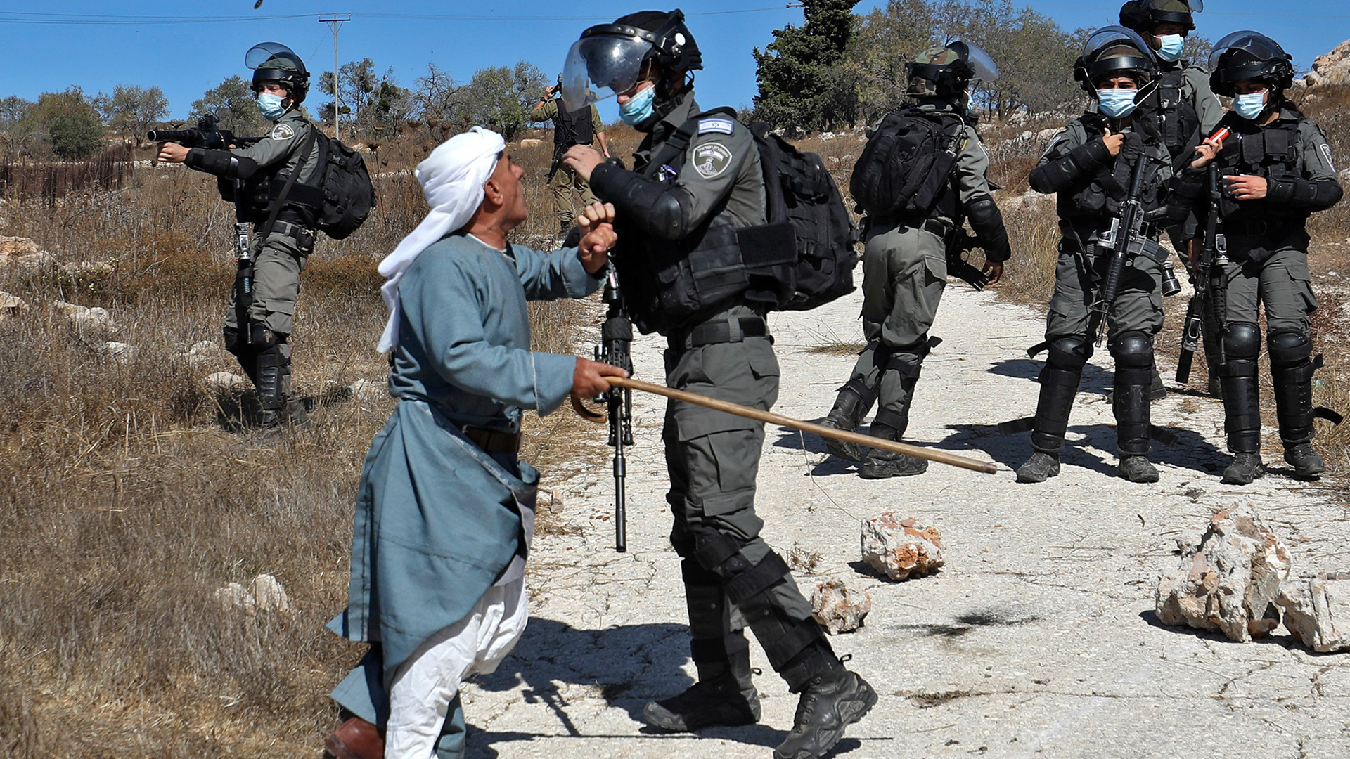 نظرا لأهمية هذه الشجرة المباركة لدى الفلسطينيين ولتجذرهم بجذورها، اعتنى المستوطنين وتحت إشراف الجيش بقيادته الحكومية لاسيّما اليمين المتطرف ورؤوسائه، لتجنيد وتمويل فتيان وفتيات التلال وكذلك المستوطنين الرعويين ومغتصبي المستوطنيات الزراعية القريبة من الأراضي الفلسطينية. فقد أعلنت هيئة مقاومة الجدار والاستيطان الفلسطينية بأن النصف الأول من الشهر الجاري تعرّض المزارعين الفلسطينيين لـ 1042 اعتداء في الضفة المحتلة من جيش الاحتلال والمستوطنين، شملت هدم منازل ومنشآت زراعية تحديدا، بالإضافة إلى اعتقالات ومداهمات، والاعتداء على قاطفي الزيتون والأراضي الزراعية، وسرقة الشجر ومحصول الزيتون، كذلك وغيرها الكثير من أساليب المستوطنين المقززة من تكسير وحرق للشجر أو إطلاق حيواناتهم ودوابهم لتهاجم وتأكل محاصيل المزارعين الفلسطينيين.